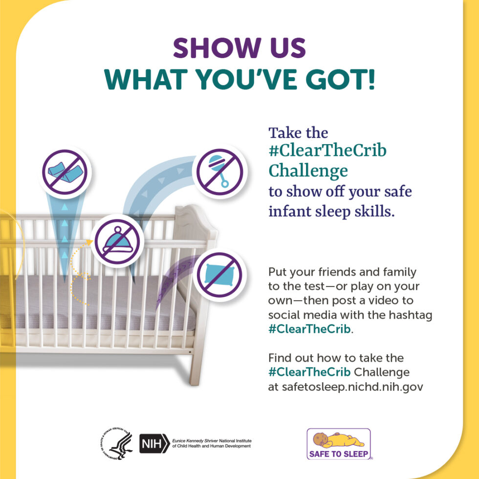 Learn more about the #ClearTheCrib challenge and get guidance for using hashtags. Get tips for addressing images or photos that do not follow safe infant sleep guidelines.
